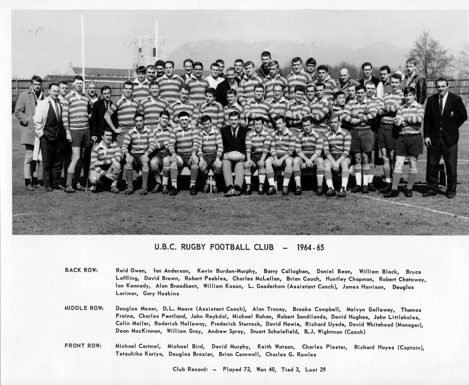 UBC RUGBY 1960s -- 1966 Cross Canada Tour; Bus Tour to Oregon 1964: Dance at Gleneagles 1964; Game against Royal Roads '64; Game in Victoria; Tom Thompson Golf Classic; Club Pictures 1966.